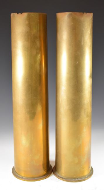 Pair of WW1 era brass shell cases dated 1911, height 40cm