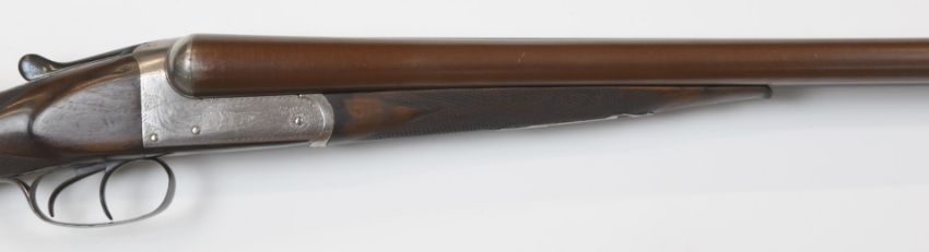 W Garden 12 bore side by side shotgun with named and engraved lock, engraved trigger guard, thumb lever, fences and underside, chequered grip and forend, double trigger, vacant cartouche to the underside of the stock and unchoked 27 inch Damascus barrels, overall length 109.5cm, length of pull 36.5cm, serial number 40334. PLEASE NOTE THAT A VALID RELEVANT FIREARMS/SHOTGUN CERTIFICATE IS REQUIRED TO HANDLE/PURCHASE THIS ITEM.