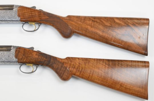 A pair of Rizzini Round Body 12 bore over and under ejector shotguns each with finely engraved locks, underside, trigger guard, top plate and thumb lever, chequered semi-pistol grip and forend, single trigger and 30 inch multi-choke barrels, overall length 122cm, length of pull 39cm, numbered in gold '1' and '2' serial numbers 88976 and 88977, in fitted double case with spare chokes, related paperwork and tags.  PLEASE NOTE THAT A VALID RELEVANT FIREARMS/SHOTGUN CERTIFICATE IS REQUIRED TO HANDLE/PURCHASE THIS ITEM.