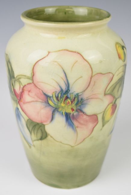 Moorcroft baluster vase decorated in the clematis pattern, signed to base circa 1930s, height 15cm