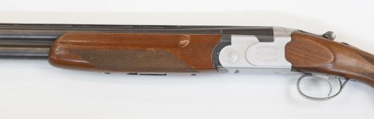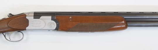 Beretta S685E 12 bore over and under ejector shotgun with engraved lock, underside, trigger guard, top plate and thumb lever, chequered semi-pistol grip and forend, single trigger, vented top rib and 28 inch barrels choked ½ and ¼, overall length 115cm, length of pull 37cm, serial number D25008B.  PLEASE NOTE THAT A VALID RELEVANT FIREARMS/SHOTGUN CERTIFICATE IS REQUIRED TO HANDLE/PURCHASE THIS ITEM.