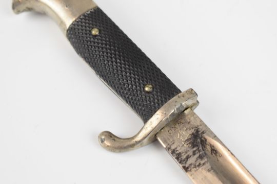 German KS98 pattern bayonet with chequered grip, WKC maker's mark to ricasso, 25cm fullered blade and scabbard. PLEASE NOTE ALL BLADED ITEMS ARE SUBJECT TO OVER 18 CHECK ON COLLECTION OR DELIVERY