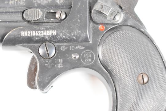 Deactivated Norris Twinny 9mm over and under Derringer pistol with chequered composite grips, serial number RN2106234BPH, with deactivation certificate dated 22/06/23.