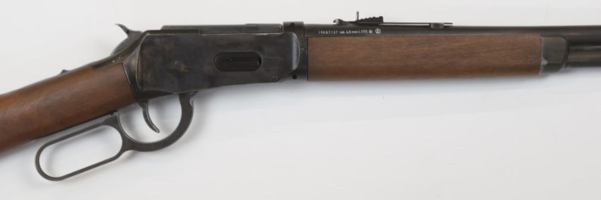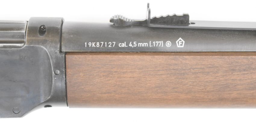 Umarex The Spirit of Legends Cowboy Rifle .177 COWinchester style lever action air rifle with belt loop and adjustable sights, serial number 19K87127, in original box.