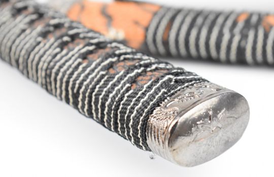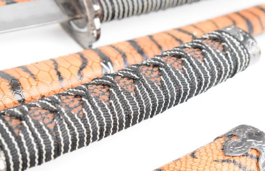 Set of three copy / replica Japanese Samurai swords, all with scabbards, longest blade 65cm. PLEASE NOTE ALL BLADED ITEMS ARE SUBJECT TO OVER 18 CHECK ON COLLECTION OR DELIVERY
