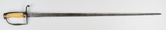 British 18thC officer's spadroon with reeded ivory grip and 83cm fullered blade, with ivory licence. PLEASE NOTE ALL BLADED ITEMS ARE SUBJECT TO OVER 18 CHECK ON COLLECTION OR DELIVERY