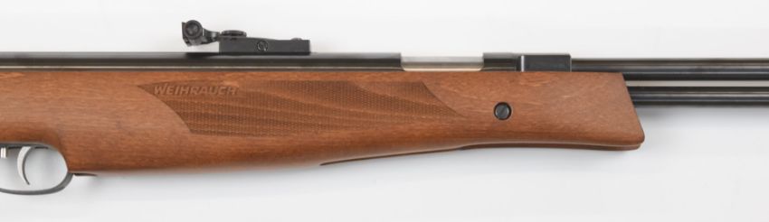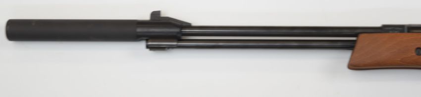 Weihrauch HW77K .177 under-lever air rifle with adjustable trigger, chequered semi-pistol grip, raised cheek piece, sound moderator and adjustable sights, serial number 2343996, in original box.