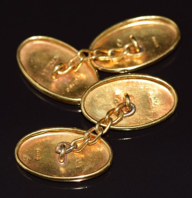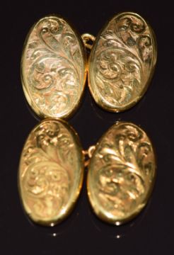 A pair of 9ct gold cufflinks with scrolling decoration, Birmingham 1930, 2.9g
