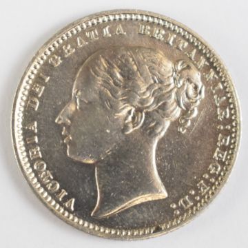 1874 Queen Victoria young head shilling, die no 9, EF-unc