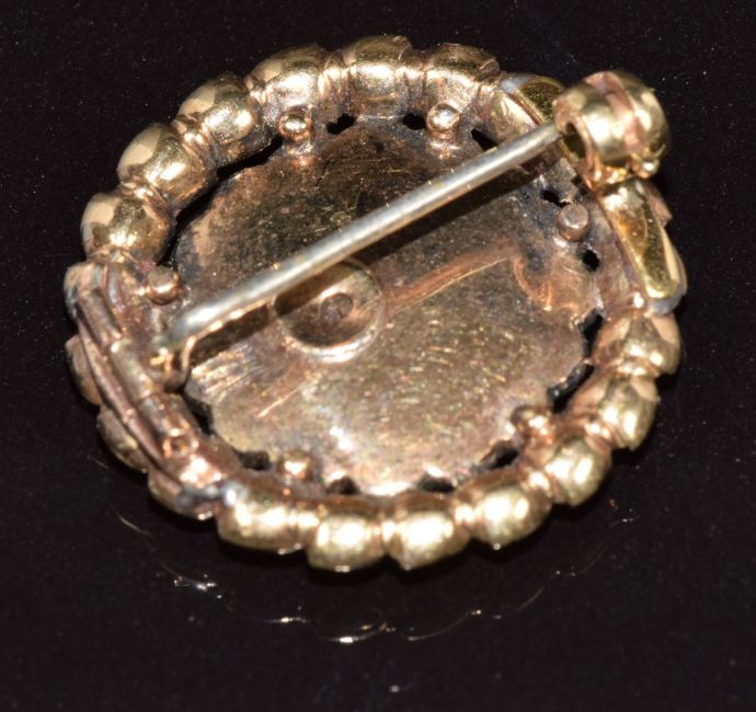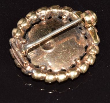An early Victorian circular brooch set with foiled garnets, 5g, 2.2cm