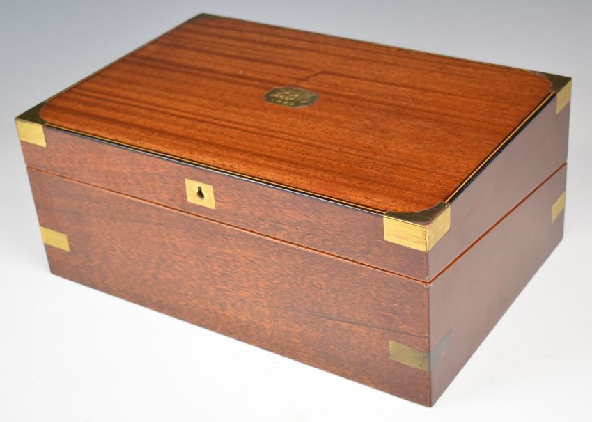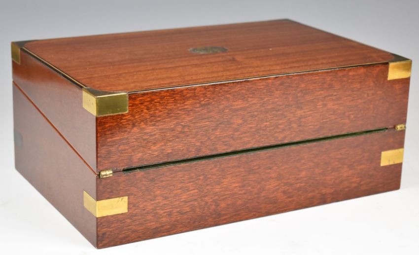 Dennis Kirkby, Cheltenham / Gloucestershire Guild of Craftsmen or similar quality brass bound leather inset and inlaid mahogany writing slope, W36 x D24 x H15cm