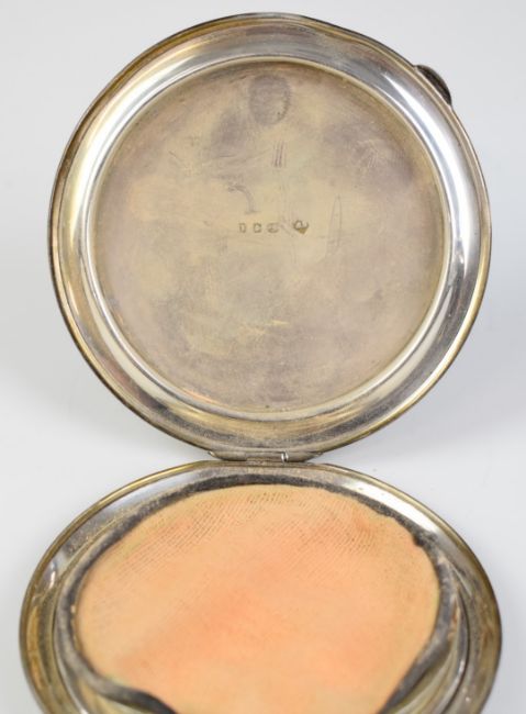 Art Deco hallmarked silver compact with engine turned decoration, London 1934, maker's mark indistinct, diameter 9cm, weight 104g all in