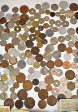 A collection of overseas coinage, 19thC onwards to include East India Company, 1867 Spanish 5 centimos, 1873 Newfoundland one cent, some silver, emergency French coinage etc