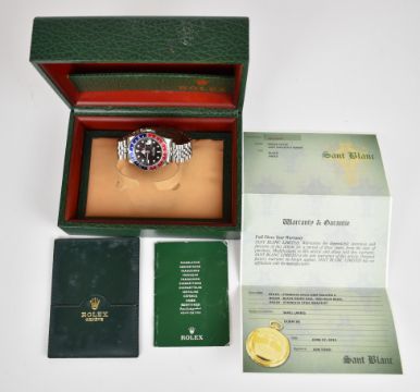 Rolex Oyster Perpetual Date GMT Master II 'Pepsi' gentleman's automatic wristwatch ref. 16710 T with date aperture, blue and red hand rotating 24 hour 'Pepsi' bezel, black dial, luminous hands and hour markers, stainless steel case and signed 31 jewel calibre 3185 movement, on stainless steel bracelet, case diameter 40mm, serial number Z813047, 2006, in reproduction box with related paperwork and Sant Blanc guarantee.