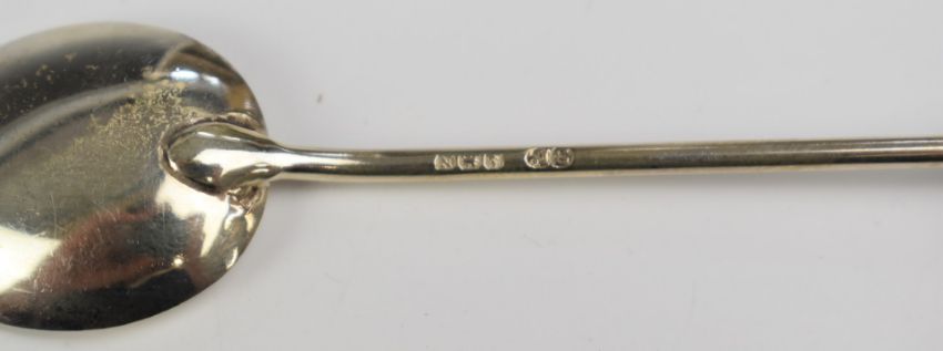 Cased set of hallmarked silver coffee bean spoons, Birmingham 1937, maker William Suckling Ltd, weight 39g all in, set of six Art Deco hallmarked silver mother of pearl handled knives, Sheffield 1922, maker C W Fletcher & Son Ltd, weight 147g all in and six further tea or coffee spoons, weight 67g