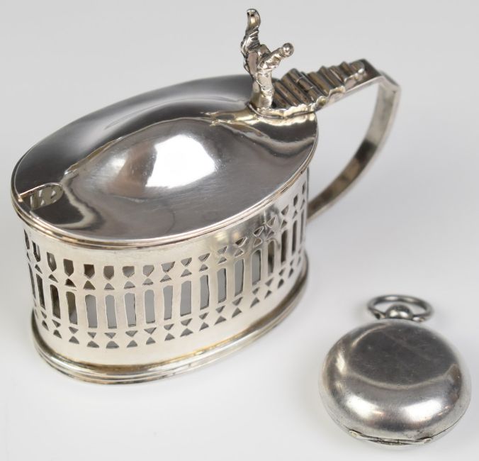 Wang Hing Chinese silver mustard and a hallmarked silver sovereign holder, length of mustard 9cm, weight of both 113g