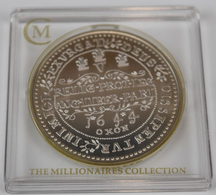 Four silver coins to include VE day £2, Cook Islands $2, Charles I restrike Oxford crown and a 1900 Victorian rupee together with a cupronickel Willem Barentsz 10 Euro, all with certificates