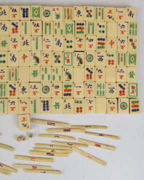 Chinese Mah Jong set with bamboo and bone counters, 160 pieces