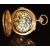 Volta 18ct gold keyless winding open faced triple calendar quarter repeater pocket watch with moonphase, ornate gold hands, white dial and unsigned movement, case diameter 57mm, 128.2g