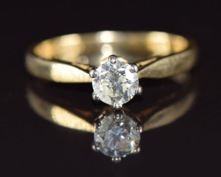 An 18ct gold ring set with a round brilliant cut diamond of approximately 0.5ct, 3.2g, size M