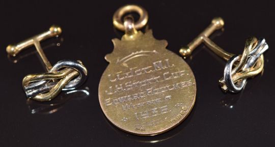 A 9ct gold fob and a pair of 9ct gold bi-coloured cufflinks, 10.2g