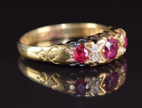 A c1910 18ct gold ring set with rubies and diamonds, 2.8g, size Q