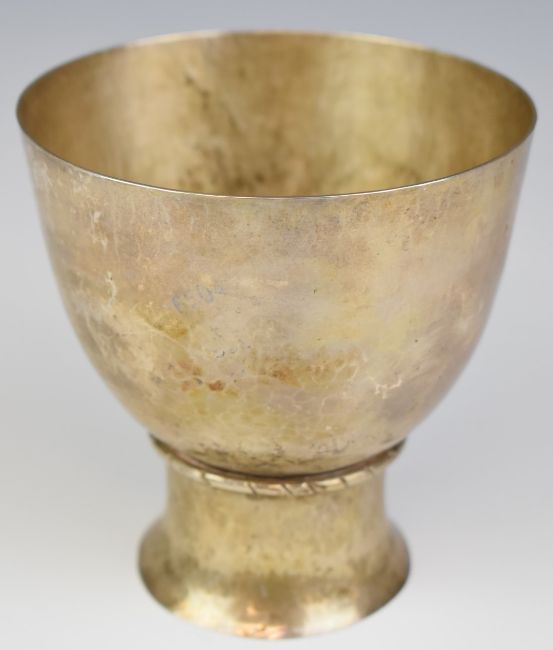 White metal goblet or bowl with Arts & Crafts style hammered finish, unmarked, diameter 10.5cm, weight 235g