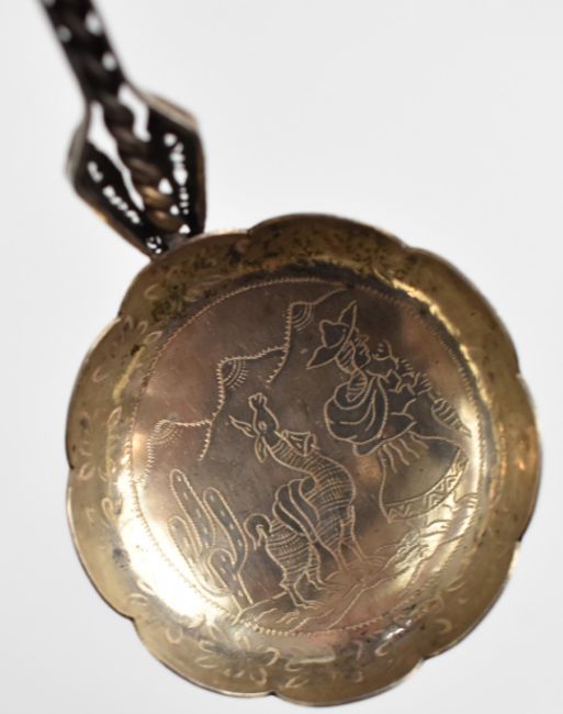 Silver and white metal items comprising Egyptian silver spoon with wrythen handle, filigree ladle, Norwegian silver spoon marked 830S, two hallmarked silver handled knives and a novelty articulated fish, length of longest 24cm, weight excluding knives 162g