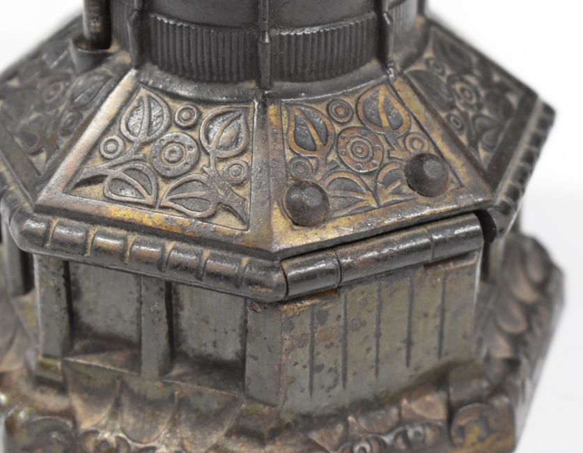 Christopher Dresser late 19th or early 20thC Archibald Kendrick and Sons cast iron coffee grinder in the form of York Minster, height 20cm