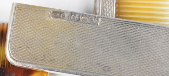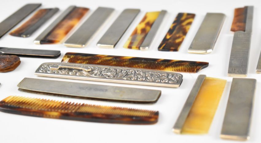 Eight hallmarked silver mounted and two further combs, many with Art Deco engine turned decoration, length of longest 11cm