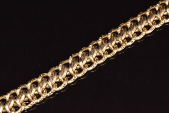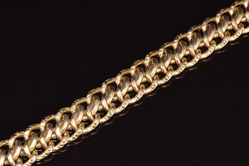 A 9ct gold bracelet with embossed decoration to the edges, 19.8g, 19cm