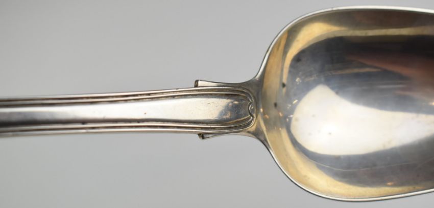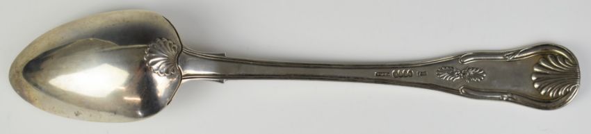 Irish Georgian hallmarked silver King's pattern basting spoon, Dublin 1822, maker James Moore, length 31cm, weight 202g