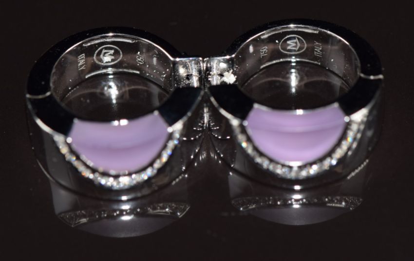A pair of 18k white gold Movado earrings set with diamonds and glass, in original box, 16.5g