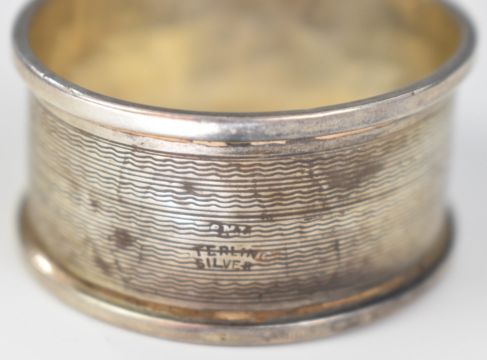 Five silver napkin rings, three hallmarked and two marked sterling, weight 93g