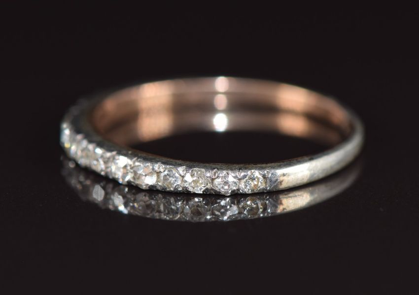 Georgian / Victorian half eternity ring set with old cut diamonds (one diamond missing), 1.2g, size M