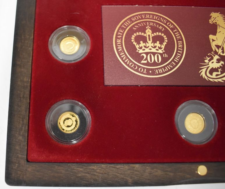 200 Years of Monarchs of The British Empire set of eight miniature gold coins, each 24ct 0.5g, in case with certificate and booklet