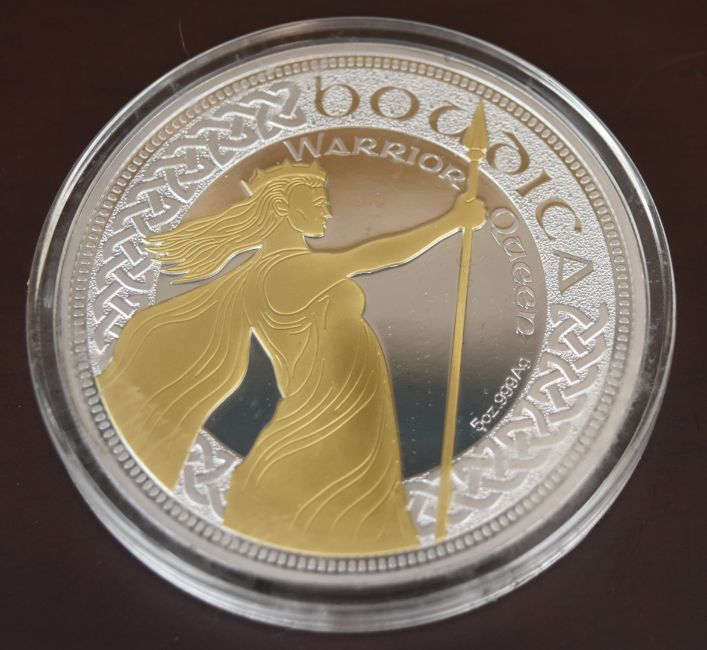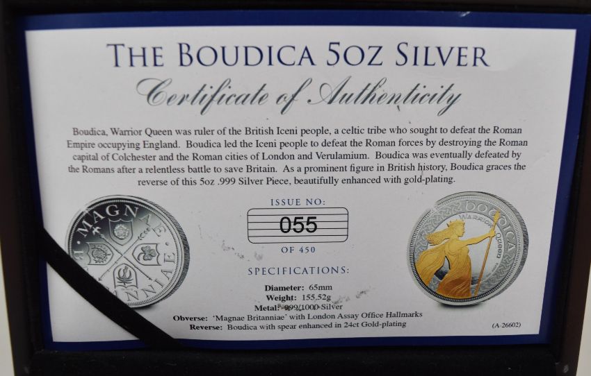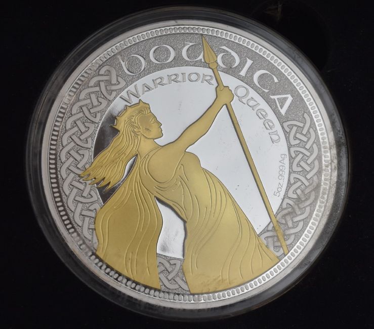 5oz silver and gilt Boudica coin, with certificate, in original case
