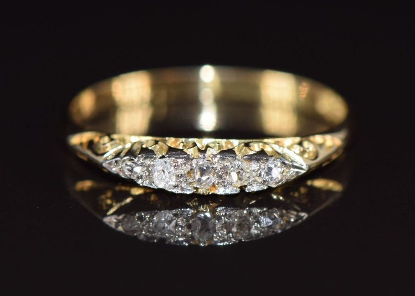 A c1900 18ct gold ring set with five diamonds 1.7g, size M