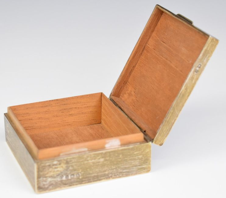 Art Deco hallmarked silver cigarette case with engine turned decoration to lid, Birmingham 1934, maker E & N Speak, width 8.5cm