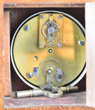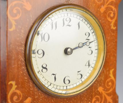 Edwardian inlaid mahogany miniature longcase clock with brass plaque verso Edwards and Jones, London, height 44cm