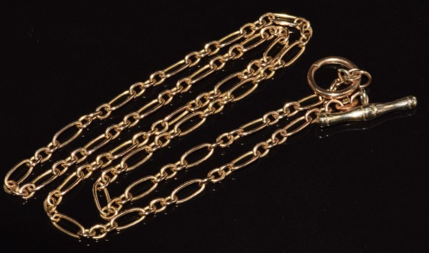 A 9ct rose gold necklace and a 9ct gold chain, 10.7g, 44cm & 60cm long