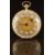 French 18ct gold open faced pocket watch with blued Breguet hands, black Arabic numerals set in white enamel cabochons, gold dial, seed pearl set case and fusee movement, case diameter 36mm, 26.4g.