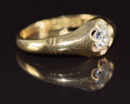 Victorian 18ct gold ring set with an old cut diamond of approximately 0.42ct, Birmingham 1844, 4g, size N