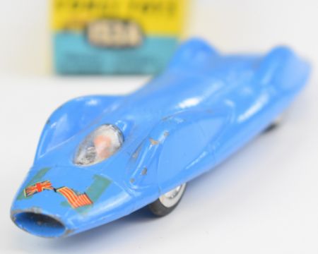 Corgi Toys diecast model Proteus-Campbell 'Bluebird' Record Car with blue body, white driver, silver hubs and Union Jack/USA decals, 153A, in original box
