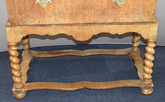 Georgian mahogany chest on stand of two over three graduated drawers with rope twist legs and bun feet, W95 x D51 x H132cm