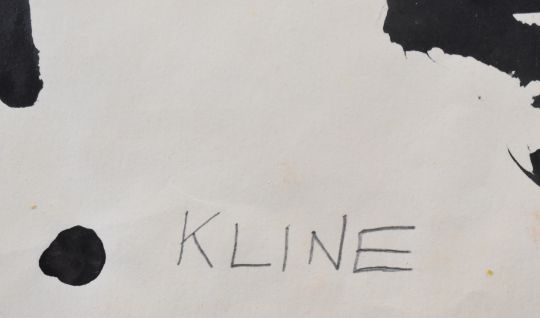 Manner of Franz Kline (American 1910-1962), ink on paper, abstract Japanese calligraphy study, named Kline lower centre, 38 x 56cm