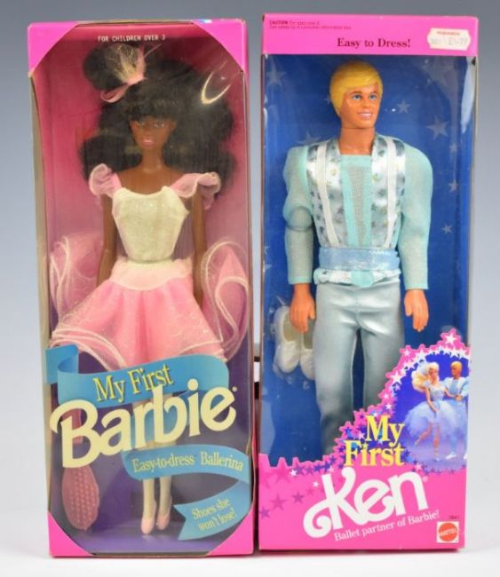 Seven Mattel Barbie dolls dating to the 1990's including Olympic Skater 18501, Beyond Pink 20017 and My First Barbie Ballerina 3839, all in original boxes.