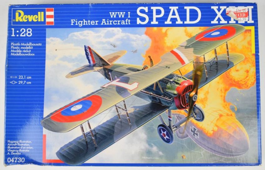 Five Revell aviation themed plastic model kits, various scales, to include Supermarine Spitfire Mk.22/24 04707, Spad XIII 04730 and Kamov Ka-58 04413, all in original boxes.