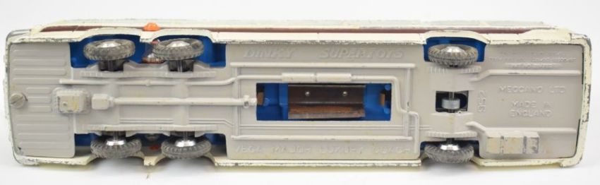 Dinky Supertoys diecast model Vega Major Luxury Coach with cream body, metallic purple stripe and blue interior, 952, in original box.