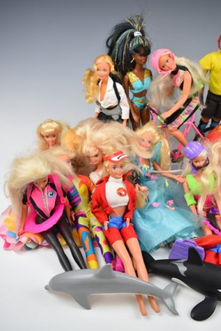 Twenty Mattel Barbie dolls dating mostly to the 1990's together with a range of clothing and accessories.